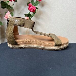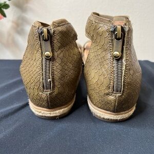 🌹 Adrienne Vittadini Green Brown Snakeskin Reptile Sandals 7.5 Platform Patrice