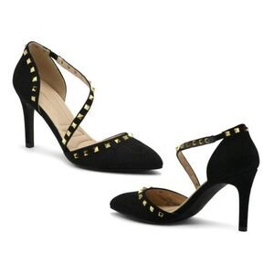 Adrienne Vittadini Heeled Pump Studs Faux Leather Black Size8.5 $99