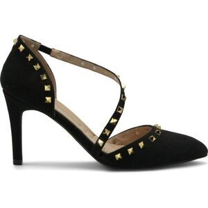 Rockstar-inspired studs accentuate the asymnmetrical strap and outline of a d'Orsay pump for a sophisticated look.