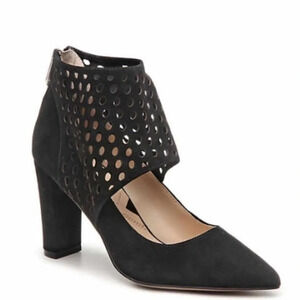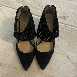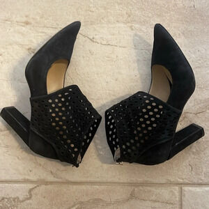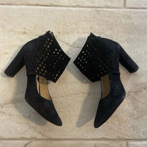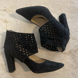 Laser cut eye catching heels in a suede material with cushioned sole and zipper back. 3.5” heel. Preloved with lots of wear left.