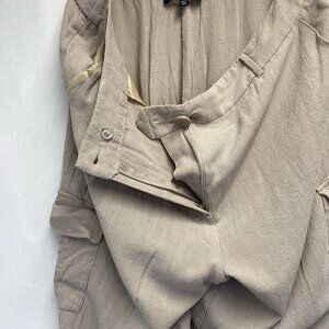 Adrienne Vittadini High Waisted Wide Leg Cargo Pants Women XL Beige Side Pockets