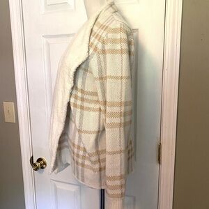 Adrienne Vittadini Ivory & Tan Plaid Open Front Cardigan Sz L