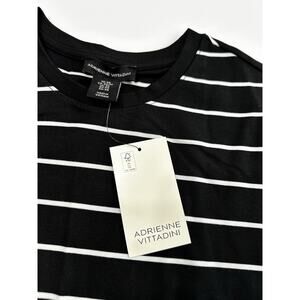 Adrienne Vittadini Knit Top Womens XS White Black Stripe Shirt Crew Neck NWT
