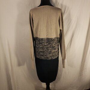 Adrienne Vittadini L Beige/Black Knit Sweater Dress