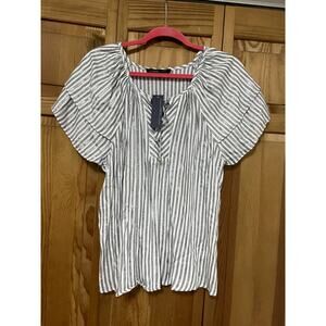Adrienne Vittadini L Flutter Sleeve Silver Striped Blouse NWT
