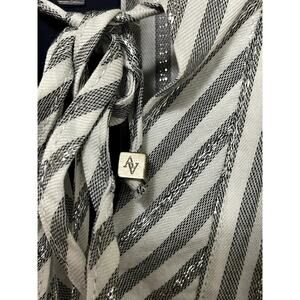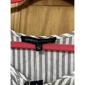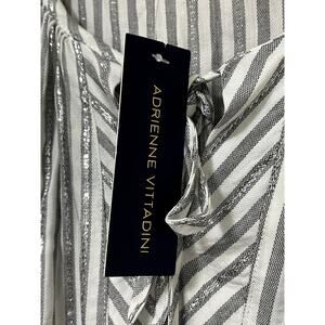 Brand new Adrienne Vittadini women's top, characterized by its gray and white stripes with subtle silver metallic thread, and flutter sleeves. Size L.
