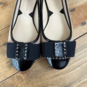 Adrienne Vittadini Leather Ballet Flats Bow Gold Accents 6.5