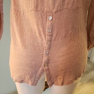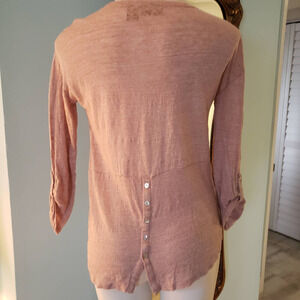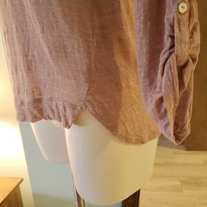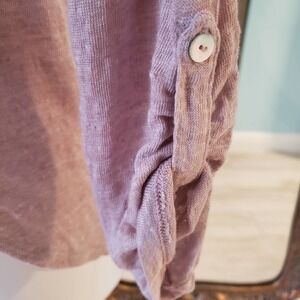 Adrienne Vittadini 100% linen knit top features cute button back. High low hem and roll tab sleeves. Soft and comfy. Pale pink. EUC