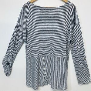 Adrienne Vittadini Linen Top Woman Large Blue White Stripe Nautical Beachy Work