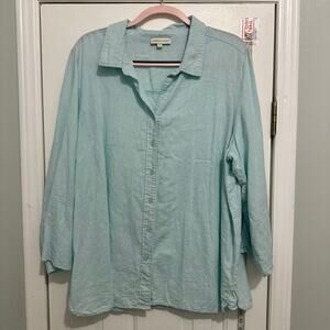 Adrienne Vittadini Linen blend Button Down blouse plus size 1x cruise wear