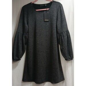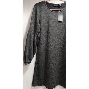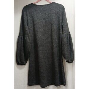 Adrienne Vittadini Long Puff Sleeve Dress Heather Black Gray Medium Boho NWT