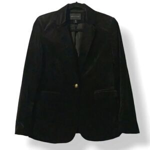 Adrienne Vittadini Luxe Velvet Single Breasted Blazer Jacket in Black Size XS