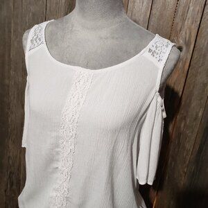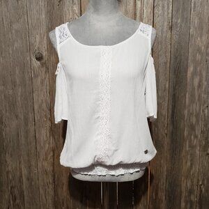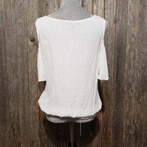 Adrienne Vittadini M Top Blouse White Lace Crochet Cold Shoulder Short Sleeve