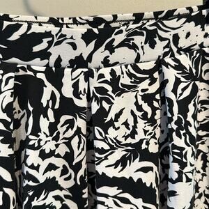 Like new condition, may have been worn once Adrienne Vittadini black and white abstract floral print pull-on skirt with elastic waist. Has pleating so offers lots of flow and movement. Size women’s medium, skirt is not lined and has pockets. Hot pink banding detail on interior is a fun detail as well. Material is a great quality and weight as an activewear piece or can be dressed up because until you feel the fabric you can’t tell it’s poly/spandex and pattern is more elevated and a classic colorway to pair with any top. So many ways to style and would be great for tennis, golf or pickleball. Also, would be a great choice for travel or to pack on a cruise since piece will not wrinkle and is “wad and go fabric.”