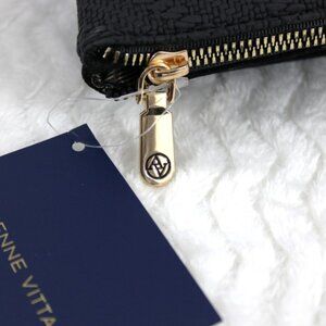 Elevate your travel and storage essentials with this chic Adrienne Vittadini Monaco Collection rectangular cosmetic bag. Designed in a sleek black woven texture with gold-tone AV logo hardware, it combines modern style with practical functionality. Perfect For: Makeup, travel, toiletries, or daily organization — stylish enough to carry on its own.