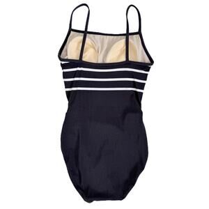 [Adrienne Vittadini] Navy Charcoal Striped Vintage Y2K Belted Swimsuit NWT Sz 6