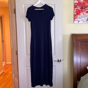 Adrienne Vittadini Navy Jersey Scoop Neck S/L Maxi Dress Side Vents Size SMALL