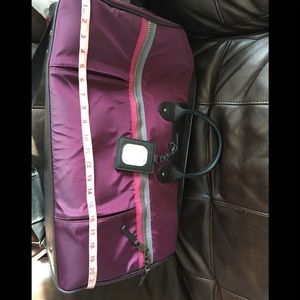 Adrienne Vittadini Two Tone Nylon 22" Multi Pocket Duffel Bag used ones, a few marks scuffs but hardly noticeable, Duffle Adrienne Vittadini Travel-Light Duffle, Made of high-density nylon, One main compartment, exterior front pocket, Two exterior zippered side pockets, adjustable and removable strap, no trades