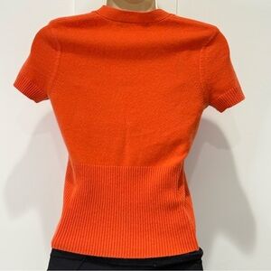 Adrienne Vittadini Orange Cashmere Cardigan XS Short Sleeve Fall Classic Chic