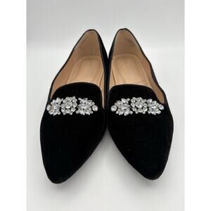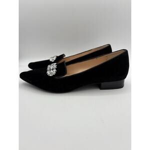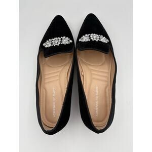Adrienne Vittadini Palo Black Velvet Flat Pointed Toe Rhinestone Shoes Size 9