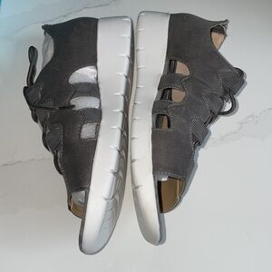 Adrienne Vittadini Sport Peggie Wedge Sport Sandals NIB - top of box is ripped. Grey Size 8 Sporty and stylish, the Peggie from Adrienne Vittadini is a comfortable, lightweight sandal that is perfect for all of your casual weekend adventures. Suede upper