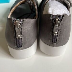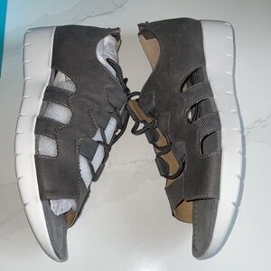Adrienne Vittadini Peggie Wedge Sport Sandals Suede Lace up NIB Grey Size 8
