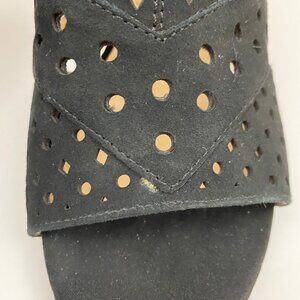 Adrienne Vittadini Phil Black Fine Leather Slingback Heeled Sandals. Model number AV-PHIL. Beautiful laser cut out details. Cone heel. Preowned Women's Size 8 M. Shoes show some wear and markings/blemishes.