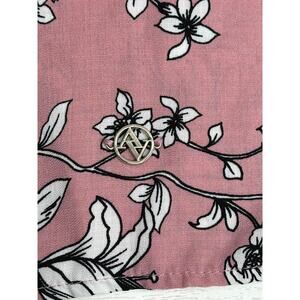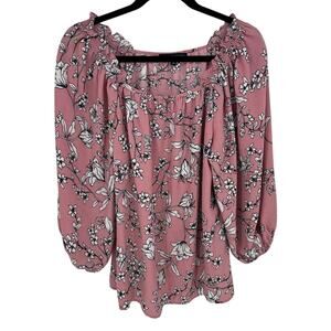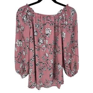 Adrienne Vittadini Pink Long Balloon Sleeve Blouse White Floral Career Office L