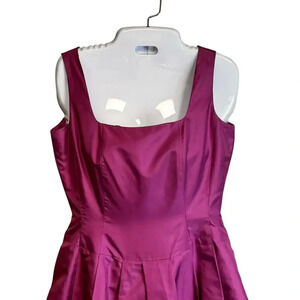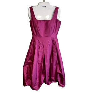 Adrienne Vittadini Hot Pink 100% Silk Balloon Skirt Sheath Dress Square Neckline, V Neck Back, Hidden Zipper closure, Knee Length. Retro 50's Vintage Style MSRP: $188