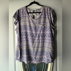 Adrienne Vittadini Purple Geometric Pattern Blouse 3X
