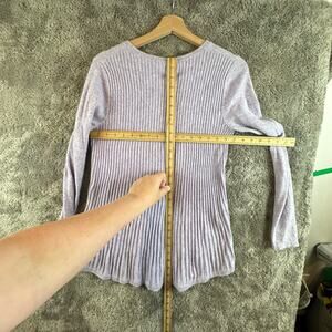 Adrienne Vittadini Purple Ribbed Pleated Sweater 100% 2 ply Cashmere M Medium