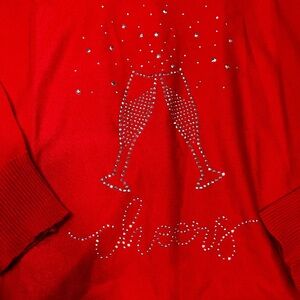 Adrienne Vittadini Red Crewneck Sweater with Cheers Design