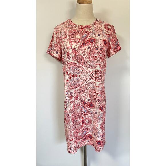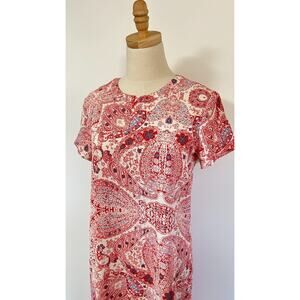 Adrienne Vittadini Red Paisley Crew Neck Short Sleeve Western Pattern Dress US 6