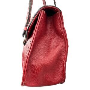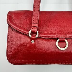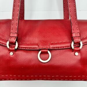 Adrienne Vittadini Red Pebbled Leather Purse Handbag Shoulder Bag Top Stitching
