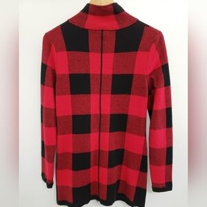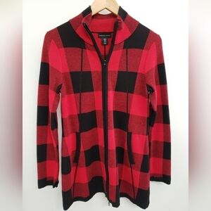 Adrienne Vittadini Red and Black Buffalo Check Full Zip Sweater Women's Sz M