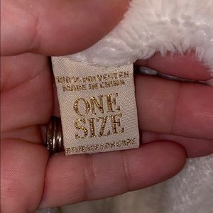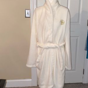Extremely comfortable & plush long robe by Adrienne Vittadini. Excellent condition from smoke free home. Color is Cream. Robe comes with Eyemask and hair band for showering/spa!
