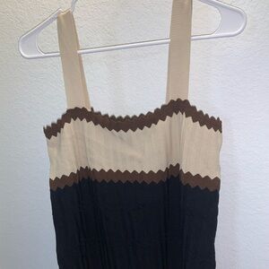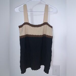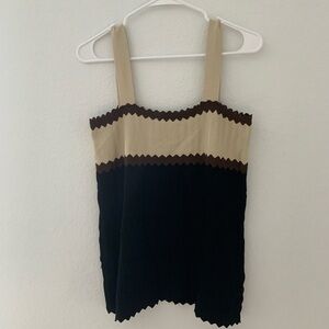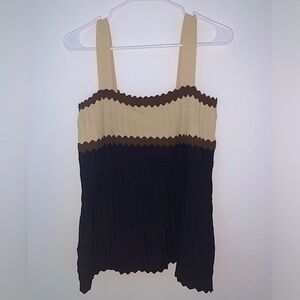 Adrienne Vittadini Scalloped Ribbon Tank Size Large Brown black tan Great condition