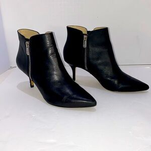 Adrienne Vittadini Senji Women's Black Leather Booties Dual Zipper Size 8