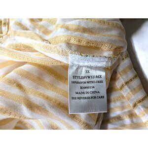 NWT Adrienne Vittadini Shirt Plus Size XXX 3X Short Sleeve Metallic Gold Striped Top Blouse Pullover Gold Bead Logo Ties Boho Peasant Tunic