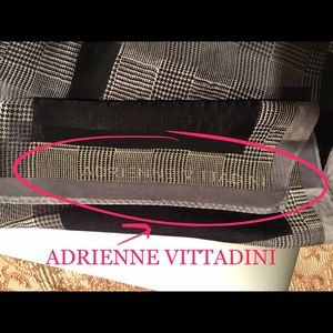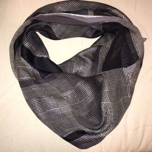 A classic with infinite stylings. 34" square VINTAGE 100% Silk Scarf. Black, white, translucent. "Adrienne Vittadini" in corner (pictured).