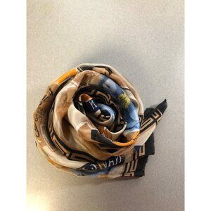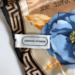 Adrienne Vittadini Silk Scarf Beige Blue Floral Cruise Travel Japan 11in x 52in
