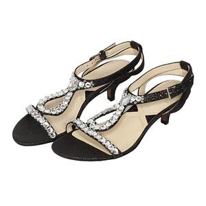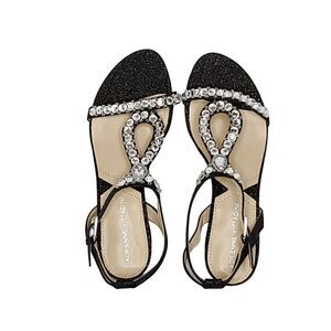 Adrienne Vittadini Slingback Sandal 6 Black Glitter Jeweled Embellished Open Toe