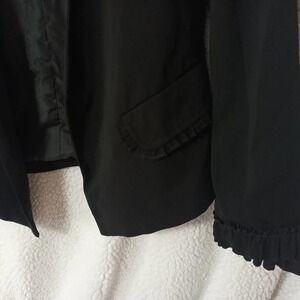 Adrienne Vittadini Small Black Blazer Jacket with Ruffles and Pockets Collarless