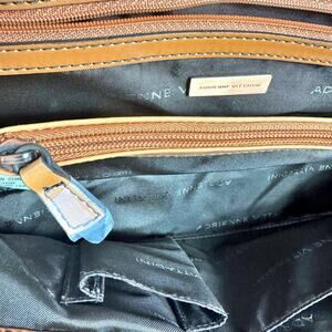 Adrienne Vittadini Western Boho vintage baguette snakeskin leather purse fold over magnetic closure and metal buckle details in golden brown. 2 interior zip pockets 2 open 2 smaller