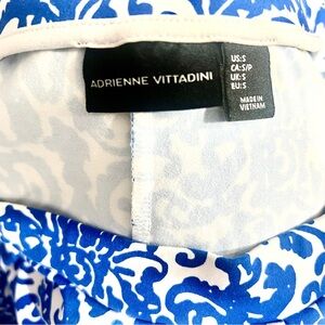 Adrienne Vittadini Royal Blue and White Scroll Print Aline Stretch Skirt. Side pockets, skater style. Wmns sz sm