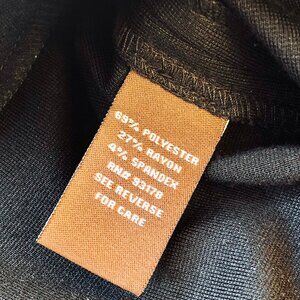 Adrienne Vittadini Studio black knee length skirt. Overall square pattern - shown on lightened photo with red background. Back zipper closure and hook & eye.