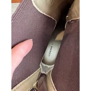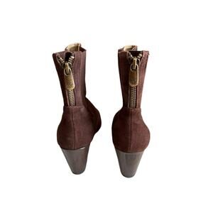 New, no box, Adrienne Vittadini Suede Wedge Ankle Boots in Chocolate Brown, size 7. Back partial zipper and stretchy elastic panels