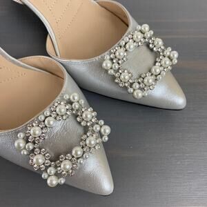 Adrienne Vittadini Suze Kitten Heels Slingback Size 7.5M Silver Pointed Toe NEW