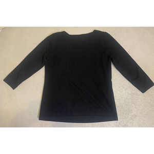 Adrienne Vittadini Sweater Womens Large Black Ruffled Neck 3/4 Sleeve Pullover