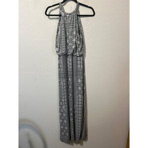 Adrienne Vittadini Sz M Black and White Print Halter Blouson Maxi Dress